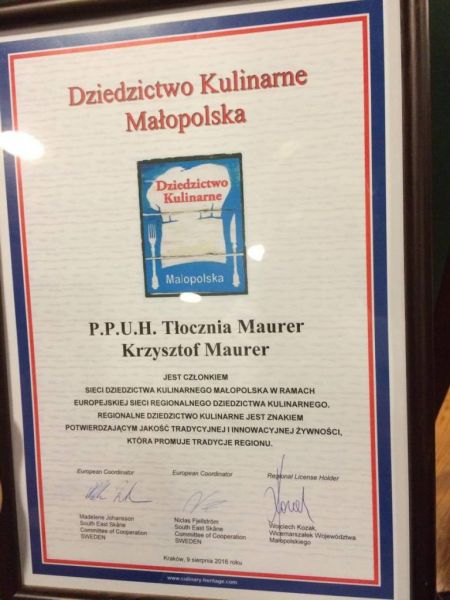 Oficjalnie jesteśmy członkiem Sieci Dziedzictwa Kulinarnego Małopolska. W dniu wczorajszym tj. 05.09.2016r. odbyło się wręczenie odznaczenia :)